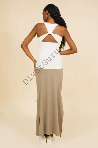A sportos vonalvezetés és a különleges hátrész teszi igazán izgalmassá az AMNESIA Zsanett topot. A viszkóz anyag lágyan követi a mozdulataidat, így egész napos viseletre is ideális. Kombináld szűk nadrággal vagy A-vonalú szoknyával – nézd meg a színválasztékot a webshopban, és válaszd a kedvenced! A modell magassága: 175 cm.
