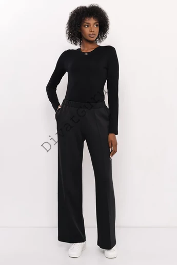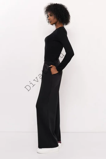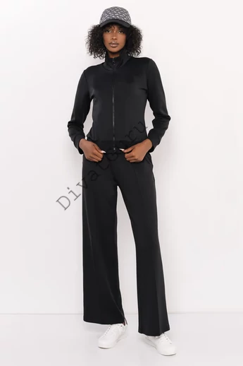 Az AMNESIA Sedna szabadidő együttes tökéletes választás a sportos, mégis nőies megjelenéshez. Búvár anyagának köszönhetően rugalmas és kényelmes viselet, amely követi a mozdulataidat és egész napos komfortot nyújt. Az egyszínű fekete szett egyszerre letisztult és elegáns, így könnyedén illeszthető a hétköznapi ruhatáradba. A modell magassága 175 cm és S-es méretet visel. A modell méretei: mell - 74 cm, derék - 65 cm, csípő - 95 cm Anyag: Búvár anyagunk sűrű szövésű, rugalmas és tartós textil, amely tökéletesen tartja a formáját. Puha tapintása és enyhe fényessége miatt ideális választás szabadidő szettekhez és sportos darabokhoz az őszi-téli szezonban.