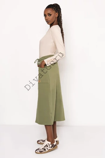 Az AMNESIA Calabri felső egy különleges darab, amely a pamut természetes komfortját ötvözi a nőies részletekkel. A hosszú ujjú, egyméretes fazont a vállnál és az ujjakon végigfutó díszített fodrok teszik igazán egyedivé, finom játékosságot csempészve a letisztult szabásba. A kerek nyakkivágás klasszikus megoldás, amely elegánsan keretezi a felsőrészt, miközben a letisztult vonalak minden testalkaton szépen mutatnak. A modell magassága 175 cm. A modell méretei: mell - 74 cm, derék - 65 cm, csípő - 95 cm. Anyag: A pamut anyag időtlen klasszikus, amely mindig trendi és sokoldalú választás a női ruhák világában. Puha, bőrbarát és jól szellőző tulajdonságai miatt egész évben kényelmes viselet. Az őszi-téli kollekciókban is fontos szerepet kap, hiszen természetes eleganciát sugároz.