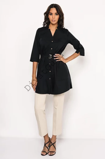 Az AMNESIA Lucas tunika a könnyed elegancia és a praktikus mindennapi stílus tökéletes találkozása. Puplin anyagból készült, amely könnyű, légies esést biztosít, így minden mozdulatnál komfortos viseletet nyújt. A tunika egyméretben elérhető, fekete és khaki színekben, melyek időtállóak és változatos szettek alapját adhatják. A modell magassága: 178 cm. A modell méretei: mell - 86 cm, derék - 65 cm, csípő - 94 cm. Anyag: Puplin anyagunk könnyű, jól szellőző és szép, finom fénnyel rendelkezik, amely elegáns megjelenést kölcsönöz az ingeknek, tunikáknak és blúzoknak. Tartást ad a szabásvonalaknak, miközben egész nap kényelmes viselet marad az őszi-téli szezonban.