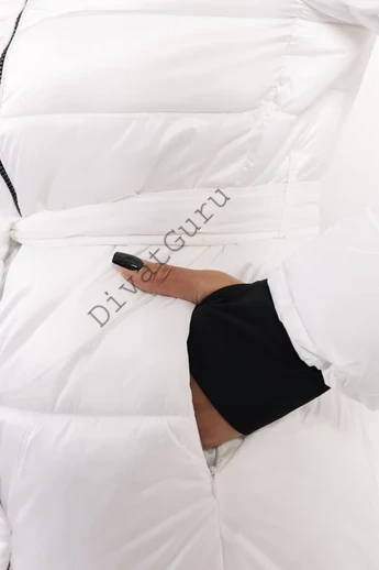 Az AMNESIA Blanka steppelt hosszú kabát a funkcionalitást és a nőies stílust tökéletesen ötvözi. Az öves fazon kiemeli a derekat, miközben a hosszított szabás és a bélelt kapucni maximális meleget biztosít. A cipzár és a finom fényű, steppelt orkán anyag modern, sportos eleganciát kölcsönöz. Anyagtípustól függően a terméken mért méretek 1-2 cm-t eltérhetnek a feltüntetettektől. A modell magassága: 178 cm és S-es méretet visel. A modell méretei: mell - 86 cm, derék - 65 cm, csípő - 94 cm. Anyag: A steppelt orkán strapabíró, szél- és vízlepergető felületű anyag, amely a steppelésnek köszönhetően könnyű, mégis meleg tartást biztosít. Ideális kabátokhoz és mellényekhez, hiszen egyszerre nyújt védelmet és divatos megjelenést a hűvösebb napokon.