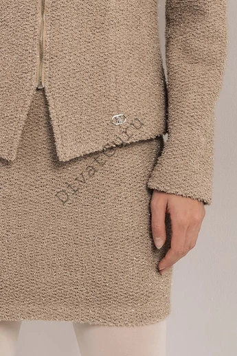 Az AMNESIA Petric blézer finoman elegáns, modern megjelenést ad – a lurex szövet visszafogott fénye pedig emeli az egész szett hangulatát. Könnyed, de karakteres darab, amely a hétköznapokban és alkalmakra is remek választás. Anyagtípustól függően a terméken mért méretek 1-2 cm-t eltérhetnek a feltüntetettektől. A modell magassága 172 cm és S-es méretet visel. A modell méretei: mell – 83 cm, derék - 62 cm, csípő - 92 cm. Anyag: A lurexes szövet elegáns, enyhén csillogó felületével azonnal ünnepi, kifinomult megjelenést ad. A finoman szőtt fémes szálak elegáns ragyogást kölcsönöznek az anyagnak, miközben megtartja lágy esését és kényelmes viseletét. Tökéletes választás alkalmi blézerekhez, ruhákhoz és szoknyákhoz, hiszen egyszerre látványos és nőies – a különleges megjelenés egyik kedvenc alapanyaga.